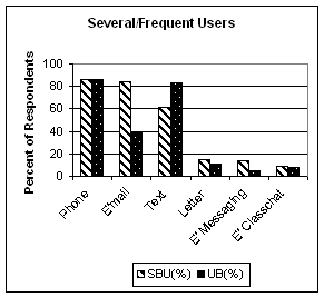 particularly at UB, possibly because of limited access. Increasing the use of e-mail should encourage