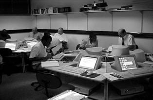 A state-of-the-art eLearning Support Centre has been implemented as the first wireless network application at the University of Botswana. Semi-embedded computers are used to facilitate eye contact among group participants. The computers are laid out in clusters to support collaborative work. A Mimio-board is used to display, via a data-projector, what is written or drawn on the white-board. Microsoft-Netmeeting is used to project the white-board or any other aspect of the instructor’s screen on the screens of all the participants, or the screen of any participant to all other participants.